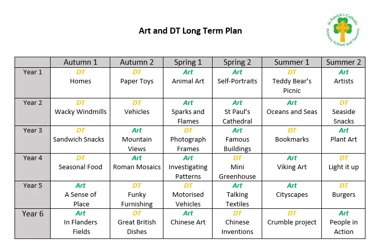 At St Patrick’s, we believe Design and Technology is a creative process, involving children in learning about the world we live in. We aim to enable children to become autonomous and creative problem-solvers, both as individuals and as part of a team. Our balanced and varied curriculum will allow pupils to use their creativity and imagination to design and make products that solve real and relevant problems within a variety of contexts, considering their own and others needs and values.