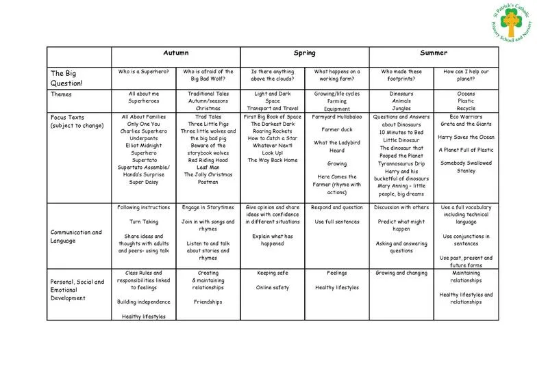 At St Patrick’s Catholic Primary School and Nursery, it is our intention that the children in our care enter a warm and welcoming environment that places their needs and development at the centre of all we do. We recognise the children’s personal, social and emotional development as paramount, thus enabling them to be happy, calm and successful learners who enjoy coming to school and being in each other’s company.