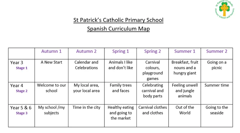 Learning a foreign language is a necessary part of being a member of a multi-cultural society and provides an opening to other cultures. The intention of the Spanish curriculum at St Patrick’s is that children are taught to develop an interest in learning other languages in a way that is enjoyable and stimulating. We enhance children’s confidence and we strive to stimulate and encourage children’s curiosity about language. We strive to embed the skills of listening, speaking, reading and writing necessary to enable children to use and apply their Spanish learning in a variety of contexts and lay the foundations for future language learning.